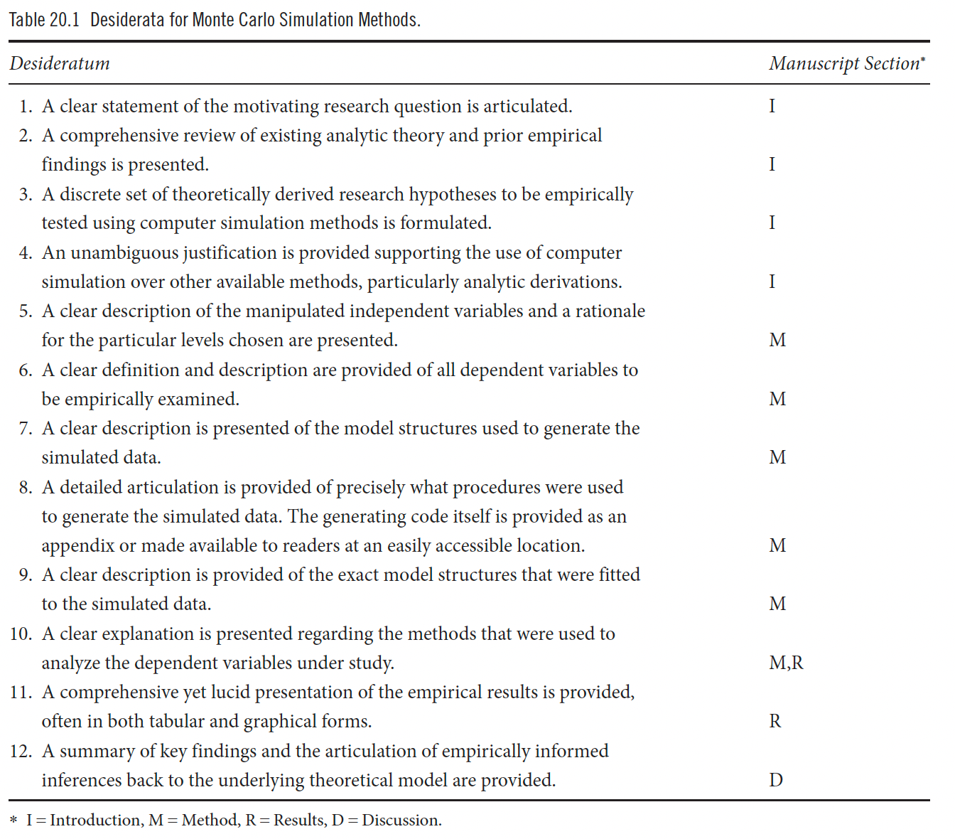 McNeish, D., Lane, S., & Curran, P. (2018). Monte Carlo Simulation Methods. In G. R. Hancock, L. M. Stapleton, & R. O. Mueller (Eds.), The Reviewer’s Guide to Quantitative Methods in the Social Sciences (2nd ed.). Routledge.